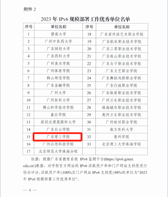 本网讯 (网教中心 陈婉纯)近日,广东省教育厅发布了《广东省教育厅关于对2023年高校IPV6 规模部署推进工作成效明显单位予以表扬的通报》,永利yl23411荣获“优秀单位”称号,这也是永利yl23411连续两年获得省教育厅在此项工作上的表彰,充分展现了永利yl23411在信息化建设领域的卓越成就和坚实实力。